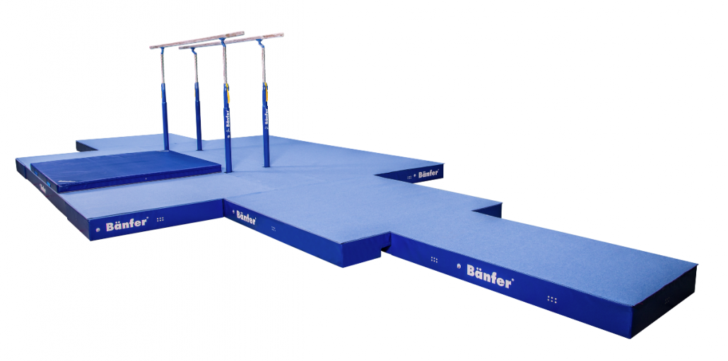 Äußerst stabile Stahlkonstruktion. Aufstandflächen mit nichtfärbenden Fußgummis. Die Barrensäulen verfügen über eine Höhenverstellung in 50 mm Schritten von 1450 bis 2050 mm mit speziell bedienfreundlicher und äußerst sicherer Klemmvorrichtung.