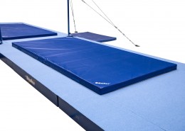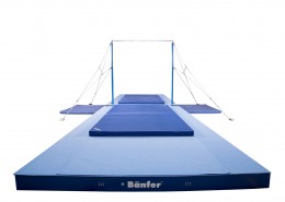 Im Recksäulenkopf befindet sich eine spezielle Reckstangenaufhängung, die durch ein Federelement Vibrationen und Kraftspitzen minimiert. Gerüst aus solider Stahlrohrkonstruktion. Höhenverstellung in 50 mm Schritten von 2550 bis 2850 mm.